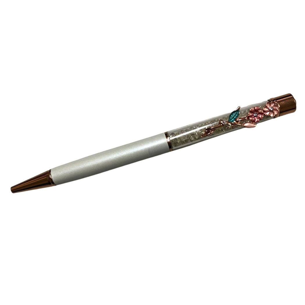 Caneta Metal Strass Com Flor - Personalizada com Nome | Branco
